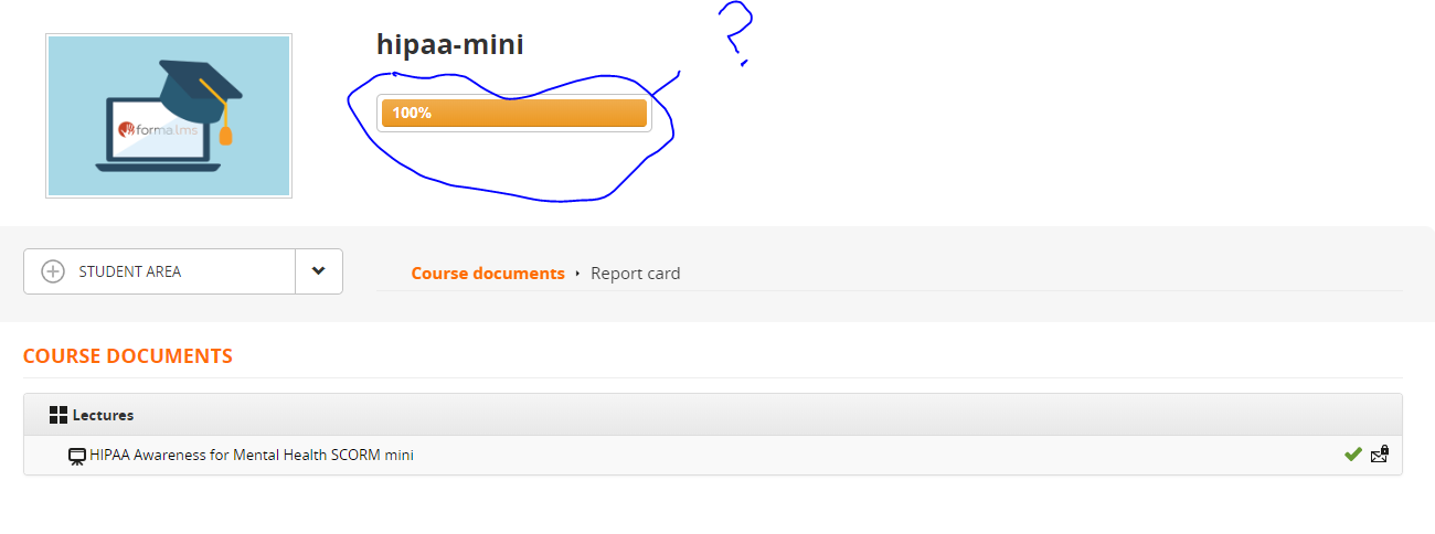 I launched the course as a student and received marks 87% as shown in the above pictures. But why it's showing 100% progress? It also happened when I launch the course and quickly closed it without going through the course. It still shows me 100% while I received marks around 4.2%