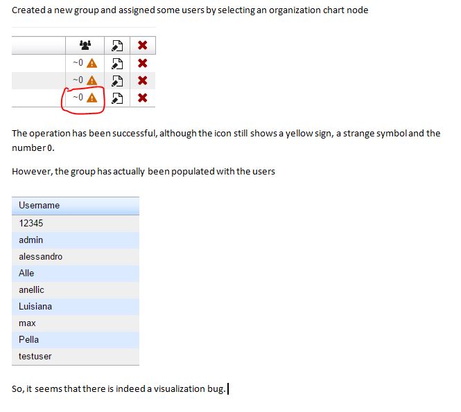 The user show on the grid and the operation says successful but when I get back to Group Management screen users are not added and I see the following in the count where users should be: