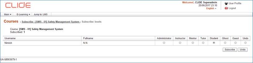 I am facing problem in assigning the course to the user. Attached two screens for reference. Once choose "Student" and then click on subscribe, I get the error blank screen. Pls help.