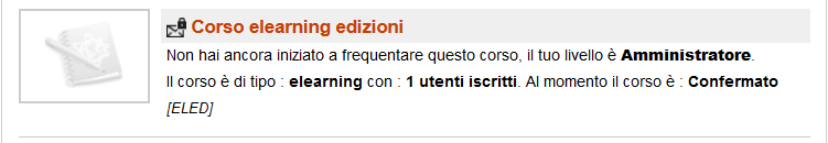 Il corso è di tipo : elearning con : 1 utenti iscritti. Al momento il corso è : Confermato