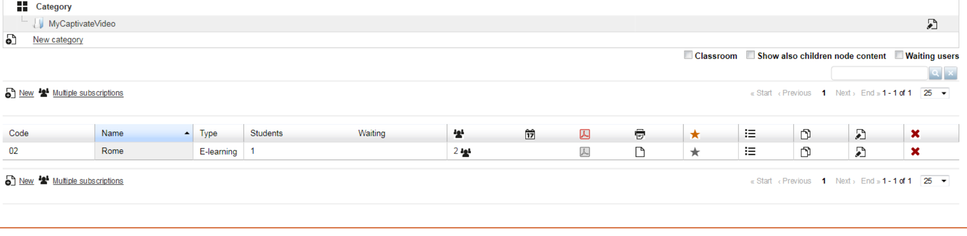 under administration > elearning > courses