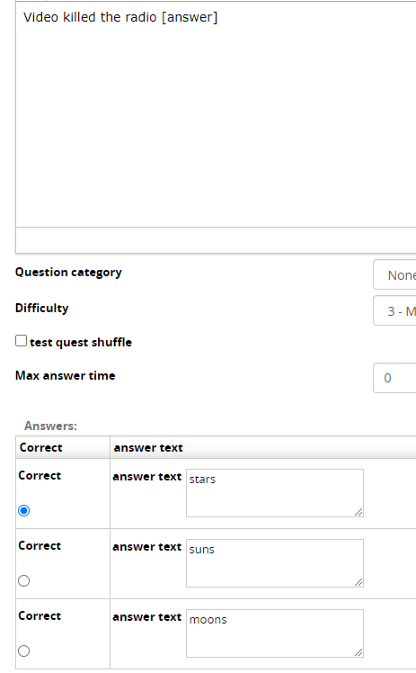 In all of these question types, the question textarea comes with a strange "[answer]" placeholder I'm afraid I'm failing to understand.