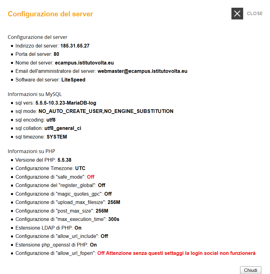 Verifica error log di apache.