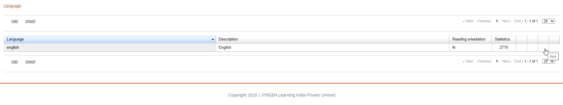 Course and Language Mgmt Edit Icons are not visible