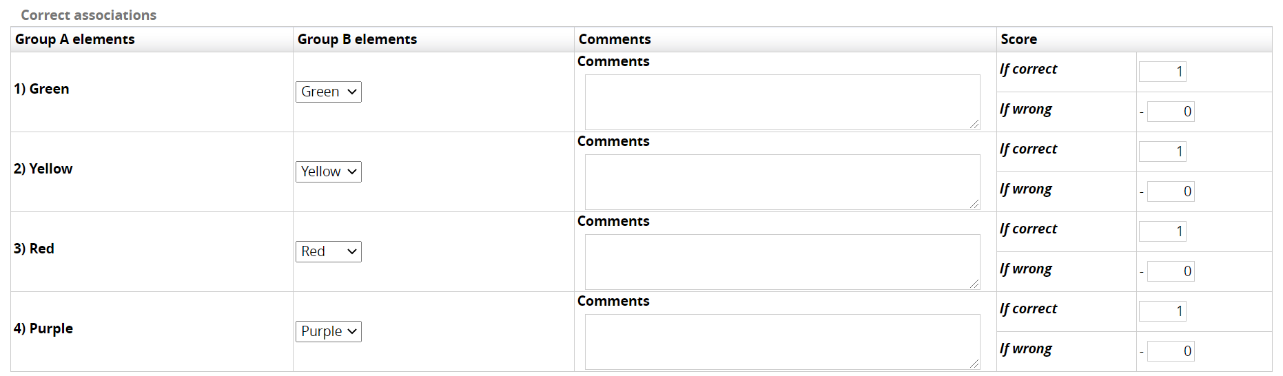I have set the correct associations and assigned a score to each correct response (See associations.png image attached).