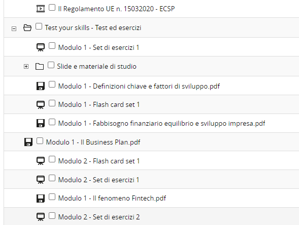 All'interno delle prime 3 cartelle si trovano oggetti didattici video e test.