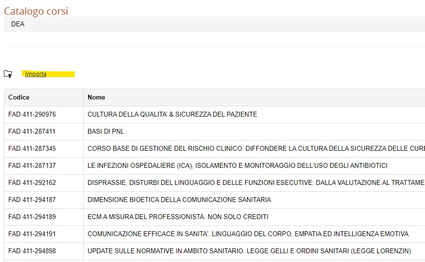 Da E-Learning > Corsi > Catalogo corsi, clicco sull'icona "mostra gli elementi del catalogo" e ottengo questo: