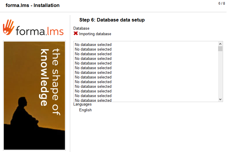 While trying to install, i get message that no database I was trying to install version 2.2.1