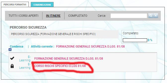 ho verificato con attenzione quanto mi dici ed ho compreso la possibilità di una modifica destinata a "spegnere" il tab corsi; il problema essenziale è tuttavia che nella tab "percorsi formativi" (piattaforma 1.4.1) il corso per il quale è prevista una propedeuticità, sebbene rechi il lucchetto, RIMANE CLICCABILE NEL TESTO (vd. screenshot allegato) e dunque accessibile ed utilizzabile, ignorando la propedeuticità di fatto.