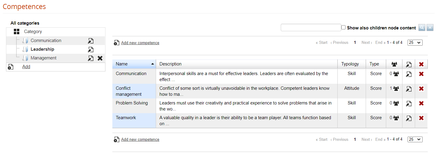 Users can obtain a competence by completing a course. Each course can assign one or more competences, see the Course Management guide.