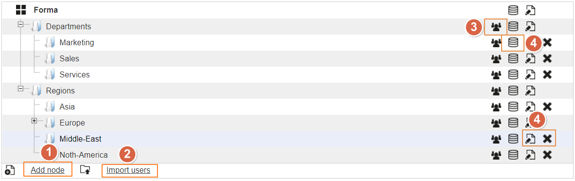 By default users can be assigned only to a single node. It is possible to assign users to multiple nodes, although this is strongly discouraged to avoid possible udesirable or unpredictable behaviours in other platform areas (ie. reports, administrators assignements, or other). To enable multi-node user assignament check the relative option under advanced configuration