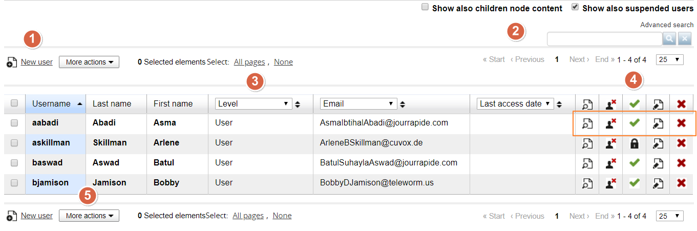 Activate/Suspend: lets you suspend or reactivate users. Suspended users will be still visible in reports if needed, but can't access the platform